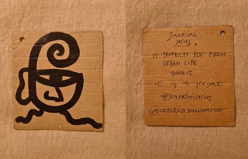 Vivere le opere di Cecilia — i suoi colori, i suoi motivi, il suo universo — è entrare nell’album Vai Mo’ di Pino Daniele. È muoversi tra ritmi mai conclusi, incontrare il tempo come risonanza, e ascoltare, sotto ogni cosa, un battito che ci invita a perderci quel tanto che basta per ricordare cosa significhi sentirsi liberi.